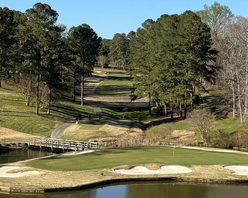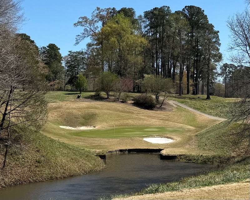 When RTJ sr designed this course, he stated it was one of his best efforts. Besides the four valley holes (2,7,12,16) one would point at 5,10,13,17,18 as very strong. The course is tight and requires you to shape your drive into the fairway. The tenth is a long par four that forces your hand to hit a long fade with a ravine on the right and trees left. The seventeenth is unbelievably tight as it is a narrow chute for 100+ yards. (The back tee is claustrophobic) Eighteen is a bit out of character with the rest of the course but only because the left side of the fairway leaves a pseudo blocked out shot. You’ll have to hit a controlled draw that takes the bank of the fairway and rolls to the green. It’s exactly the type of course you’d expect from the 1960s.