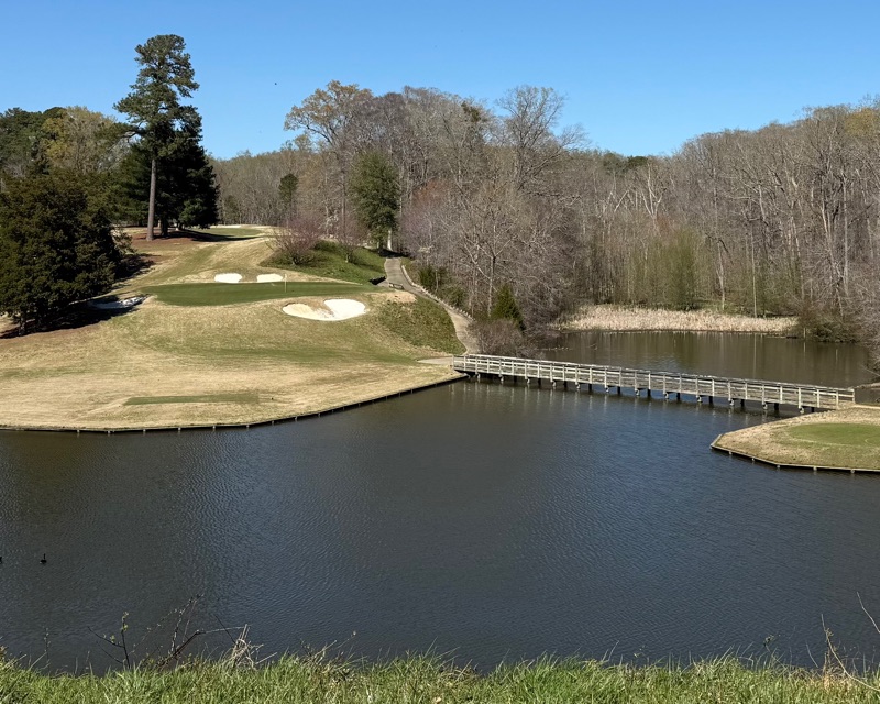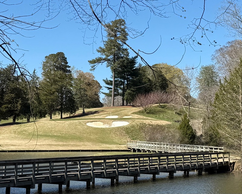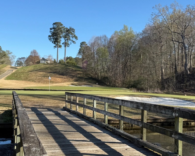 …I love the wooden bridges. Look how high up the green sits on the hill. What a great par three!)