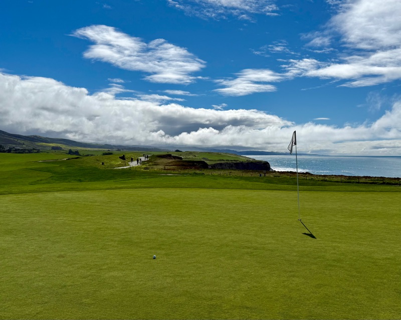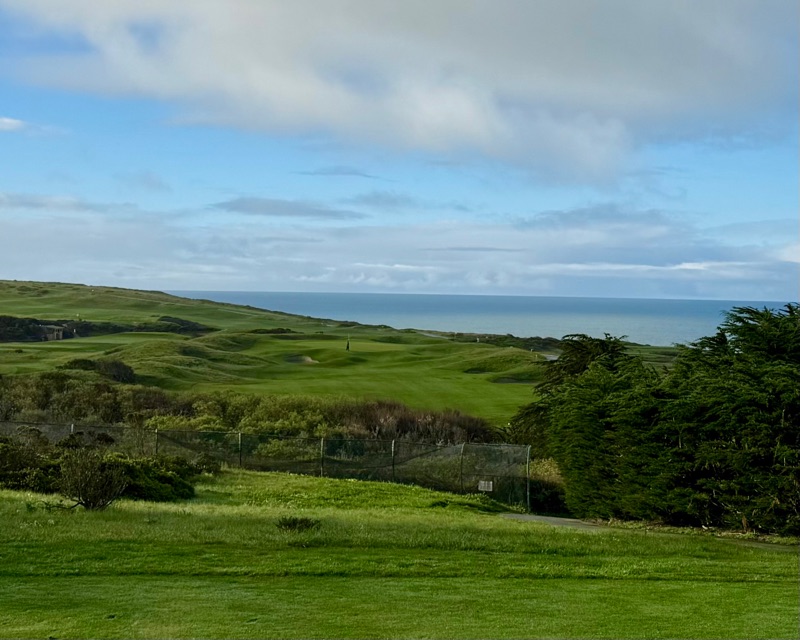 …this is the view looking back. Half Moon Bay is one of the best coastlines you can golf on.)