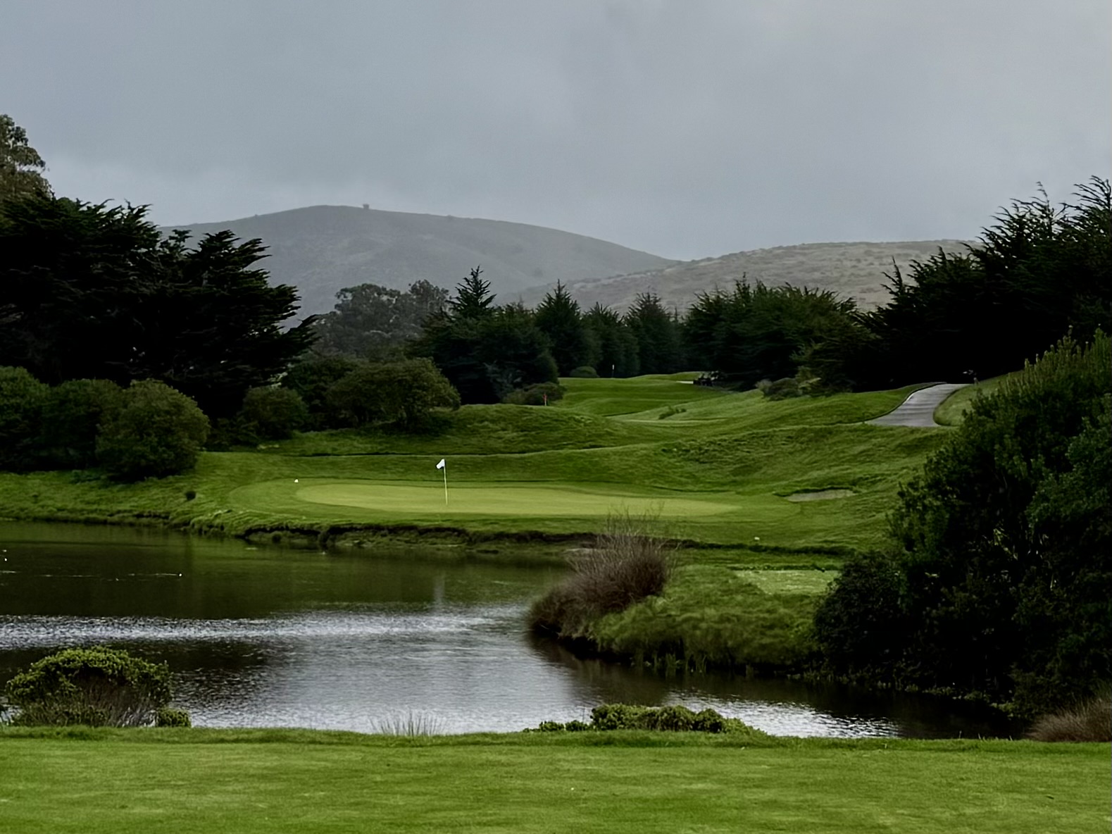 (This is the view from thirteen tee overlooking the golf course. The ocean is a constant companion sans the 7-9 trio.)