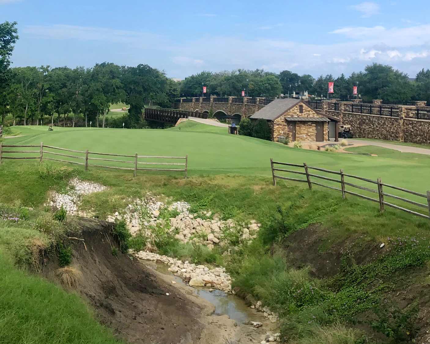Weiskopf choose muscle over strategy at Craig Ranch as Rowlett Creek serves mainly as a backdrop. Only on the excellent par five ninth does one have to decide how aggressive to be on the second shot with its diagonal carry. The third is also noteworthy as the strong player has the option to carry the creek on a direct line to the green. Such is the life of a PGA Tour course. When challenging the best players and holding high level events, the architect must account for the prodigious length they hit it today and find the routing that best gets every yard out of the property. At Craig Ranch, this means eschewing the creek, and backing the tees and greens up to hit that number. That’s too bad because the beauty of the creek is what caught my attention when I arrived and what I remember the most after leaving. The course is still a great but it could’ve been next level.