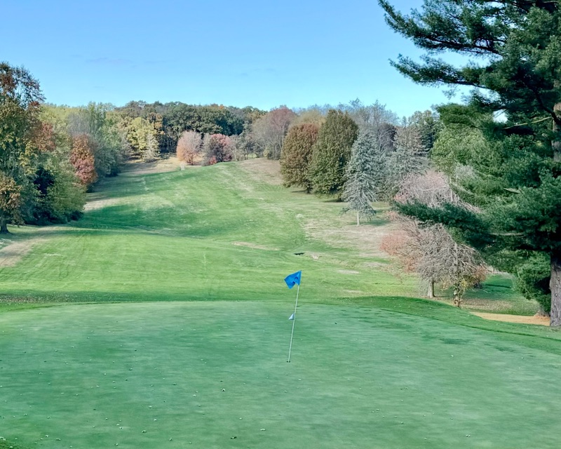 …the shorter green receives the most play. I reckon the aging membership and the opportunity to end on a good note is the overwhelming reason. It’s also a nicely designed green complex that’s crowned on the sides. The one further up the hill is harder to hit with only the top of the flagstick visible. For a nine hole course, it distinguishes the last hole for those making a second loop to play eighteen.)