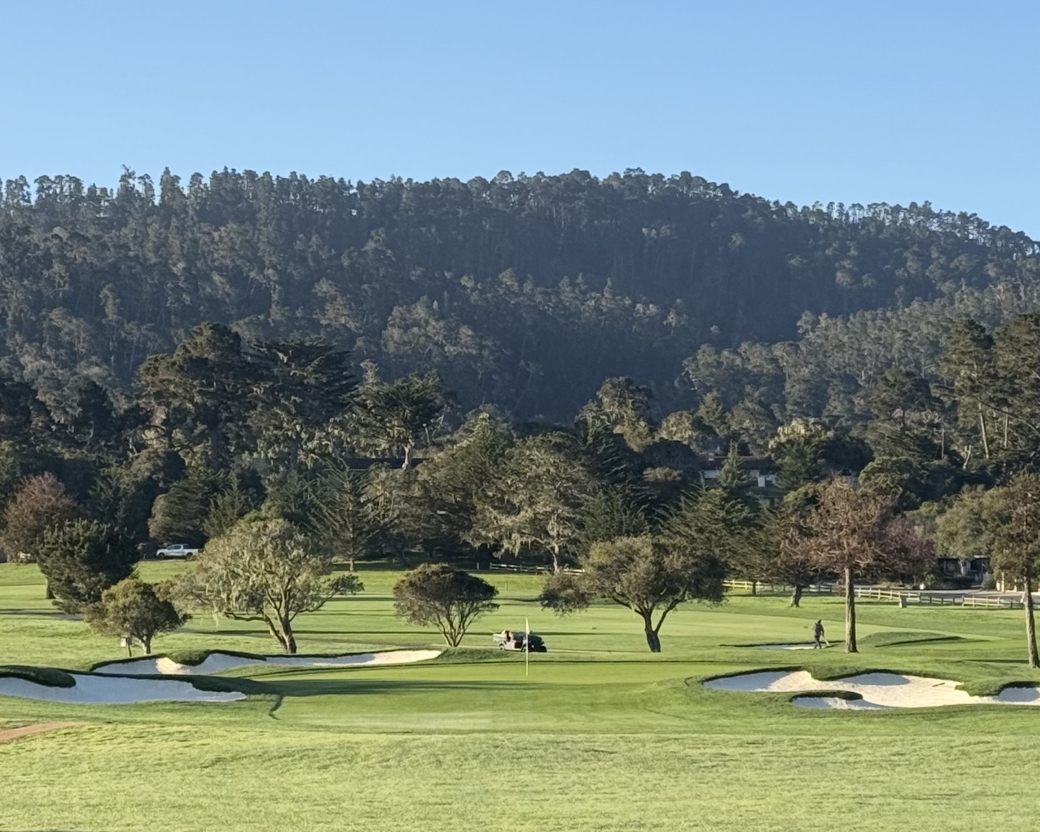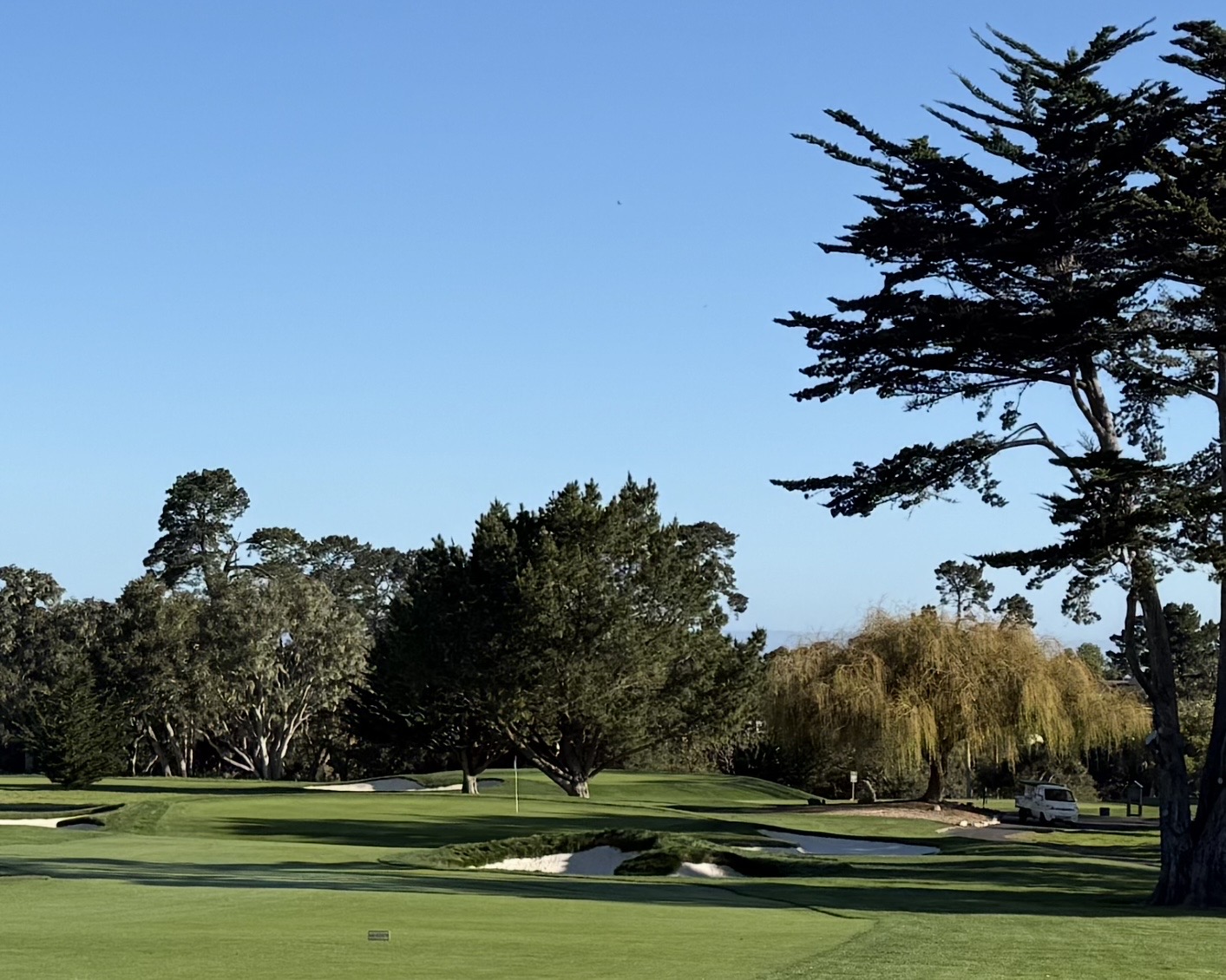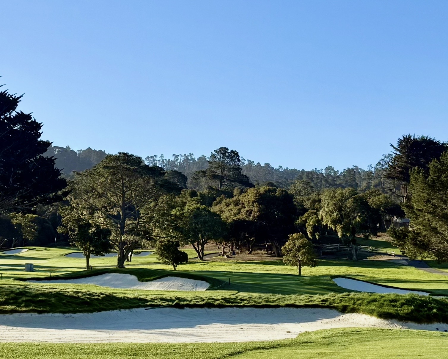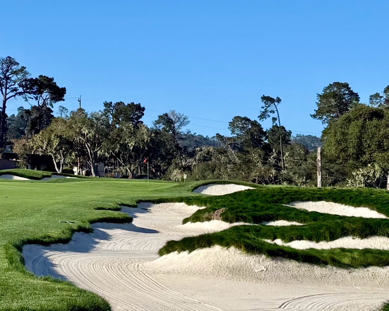 Del Monte is owned by the Pebble Beach Company and is their affordable option. It reminds me of the old parkland courses we have here in northeast Ohio. The greens are small, quick, and well bunkered. Three and four putting is a concern if you have a downhiller of any significant length. The deep rough makes up for the trees they lost that lined the fairway. While the scorecard boasts five par fours that play under 350 yards, it’s the long par threes that grab your attention. The shortest one is 168 yards yet its minuscule green is surrounded by sand traps. The longest is 215 yards and plays uphill. They put a lot of pressure on you to birdie the short fours. And once again, it’s the greens that will make or break your score. It is a thorough examination.