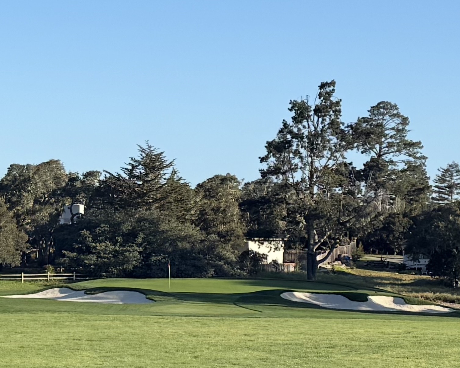 …the second shot is the critical one as it’s an extra club with the left half forming a higher tier than the middle and right. It’s the number one handicap hole.)
